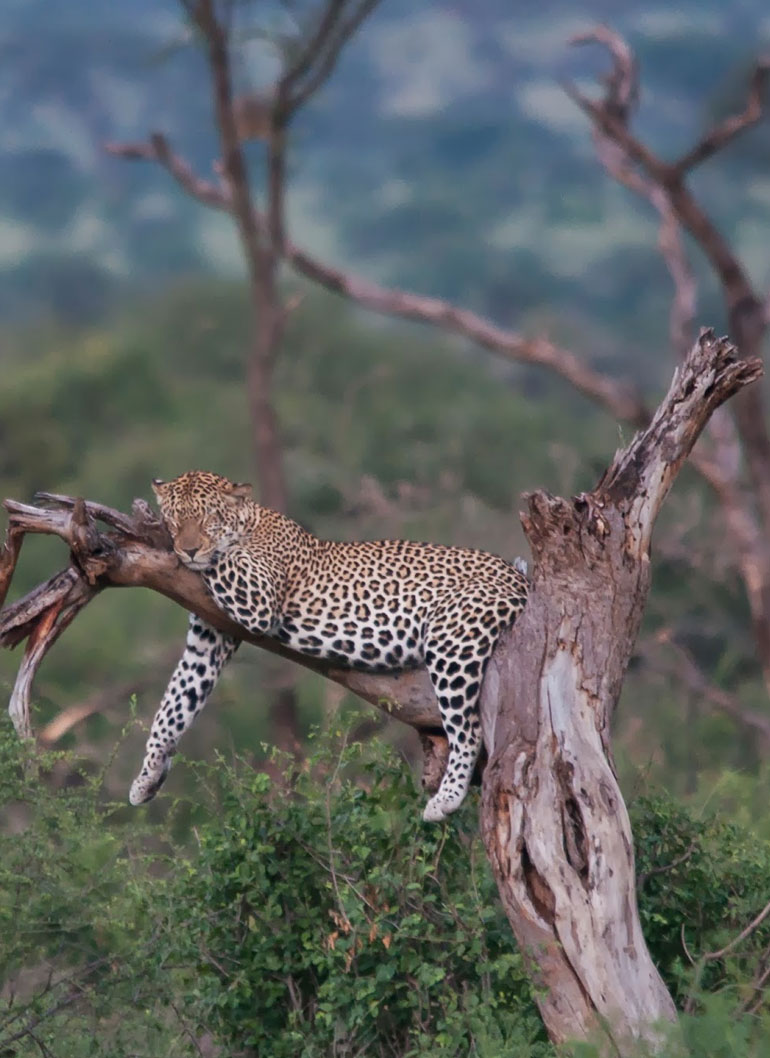 Samburu offers a distinctive and beautiful landscape, vastly different from Kenya’s more famous savannah parks like the Maasai Mara or Amboseli. The terrain consists of rugged hills, woodland, and riverine forests, with the Ewaso Ng’iro River running through the reserve. The river is a vital water source for wildlife, and many animals gather along its banks, making it a prime area for game viewing.